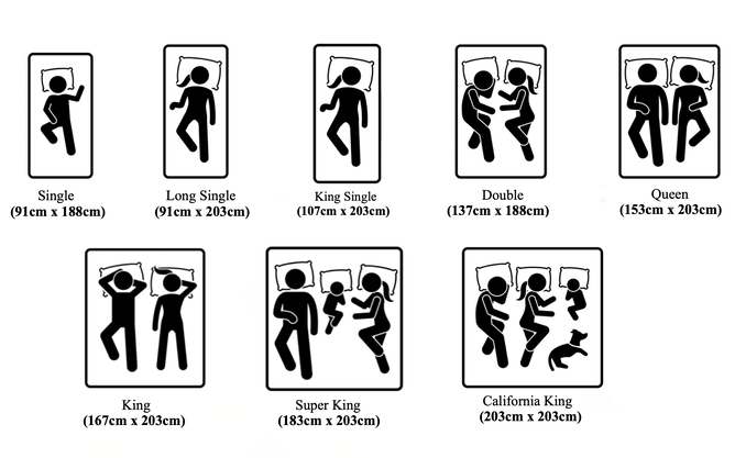 ...mattress sizes differ all around the world! Pictured above are the size guidelines we follow here in New Zealand, and they're what you will find if you come and visit us in-store.