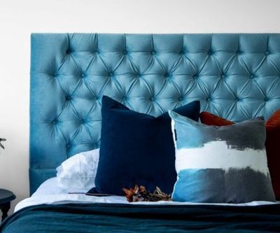 The Mazon Sofia headboard has a square top with deep buttoning.