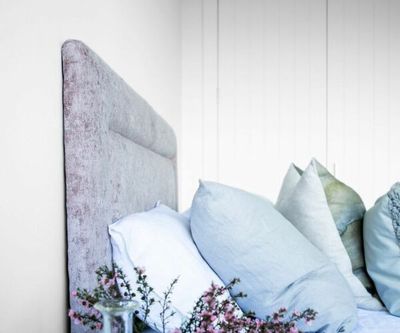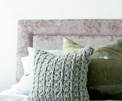 The Mazon Zita headboard is a rolled edge design with inlay border and panel.